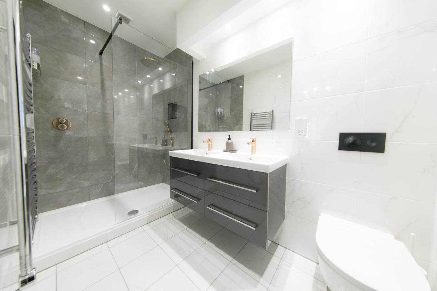 Two-Bedroom Apartment. The spacious apartment features 2 bedrooms and 2 bathrooms with a bath or a shower and free toiletries. Guests can make meals in the kitchen that is equipped with a stovetop, a refrigerator, a dishwasher and kitchenware. The apartment provides soundproof walls, a tea and coffee maker, a dining area, a sofa, as well as a flat-screen TV. The unit offers 3 beds. ;